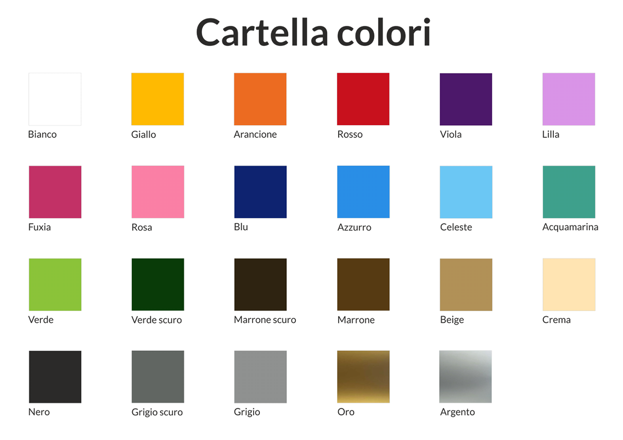 Qui troverai la cartella colori di riferimento per tutti i nostri adesivi murali monocolore.