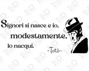 Adesivo da parete frase Totò "Signori si nasce e io, modestamente, lo nacqui". Una celebre frase ricca di ironia, del grande Antonio De Curtis in arte…